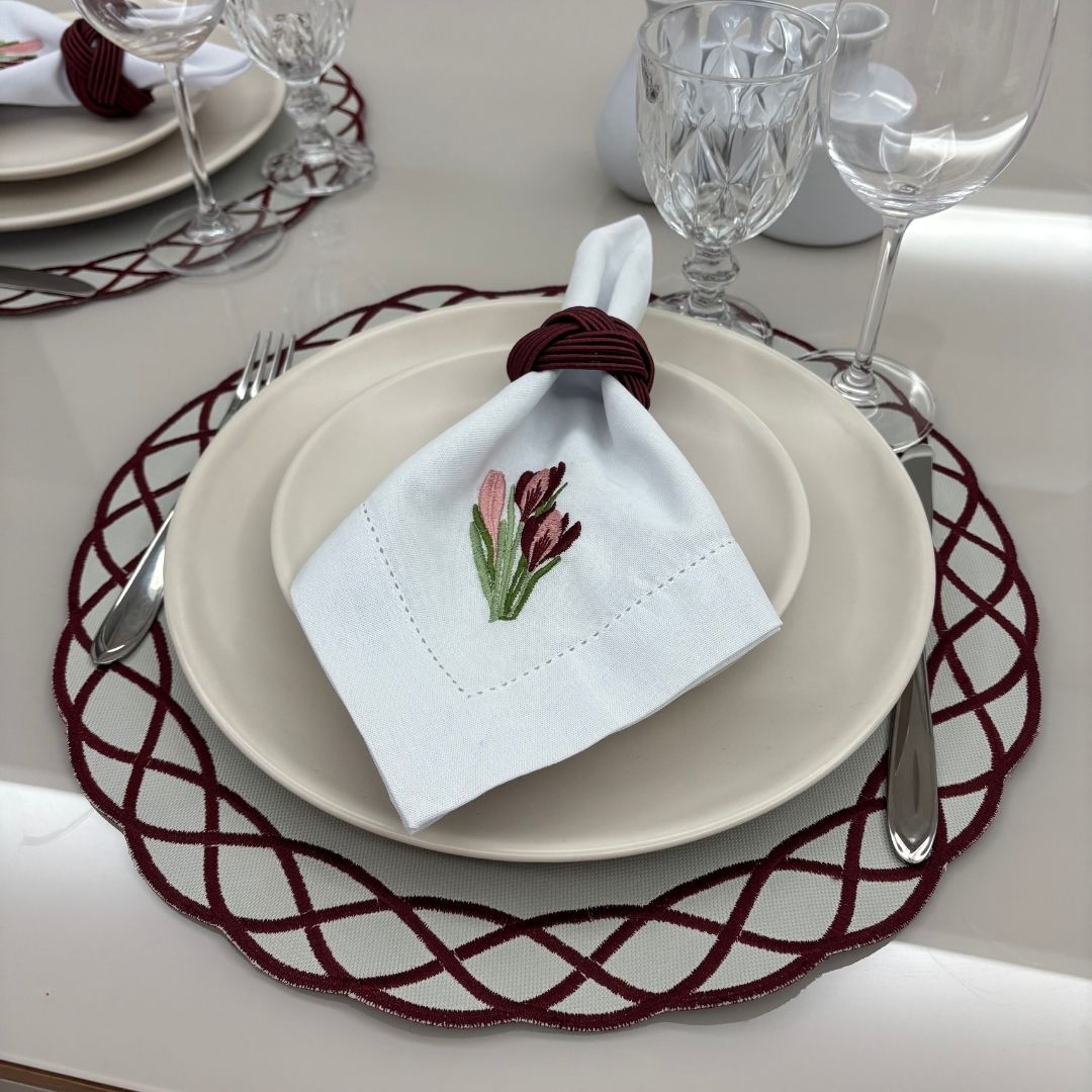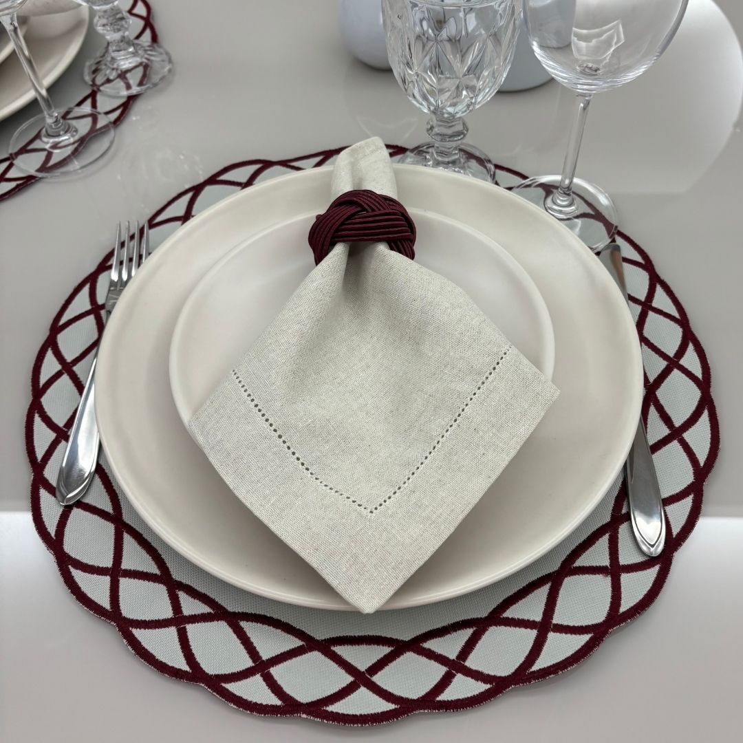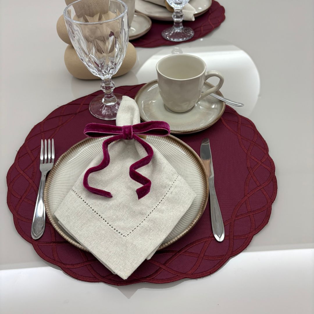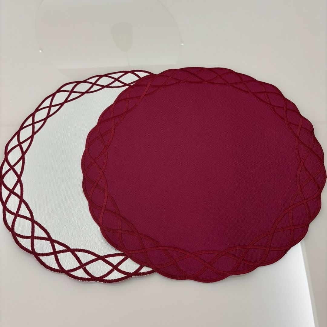 Lugar Americano Elos – 2 faces – bordo / bege com bordado bordo
