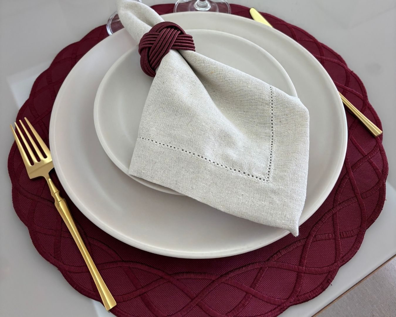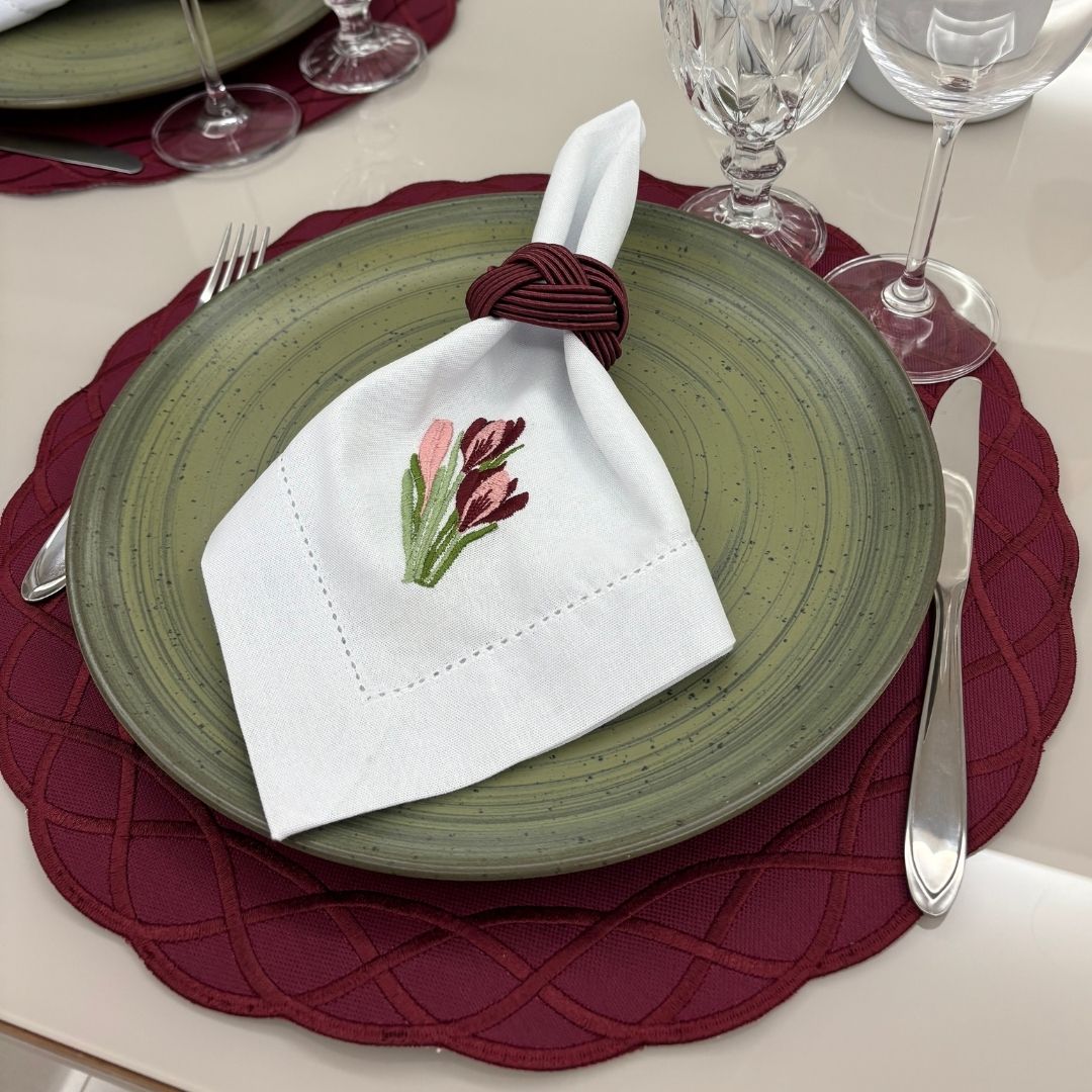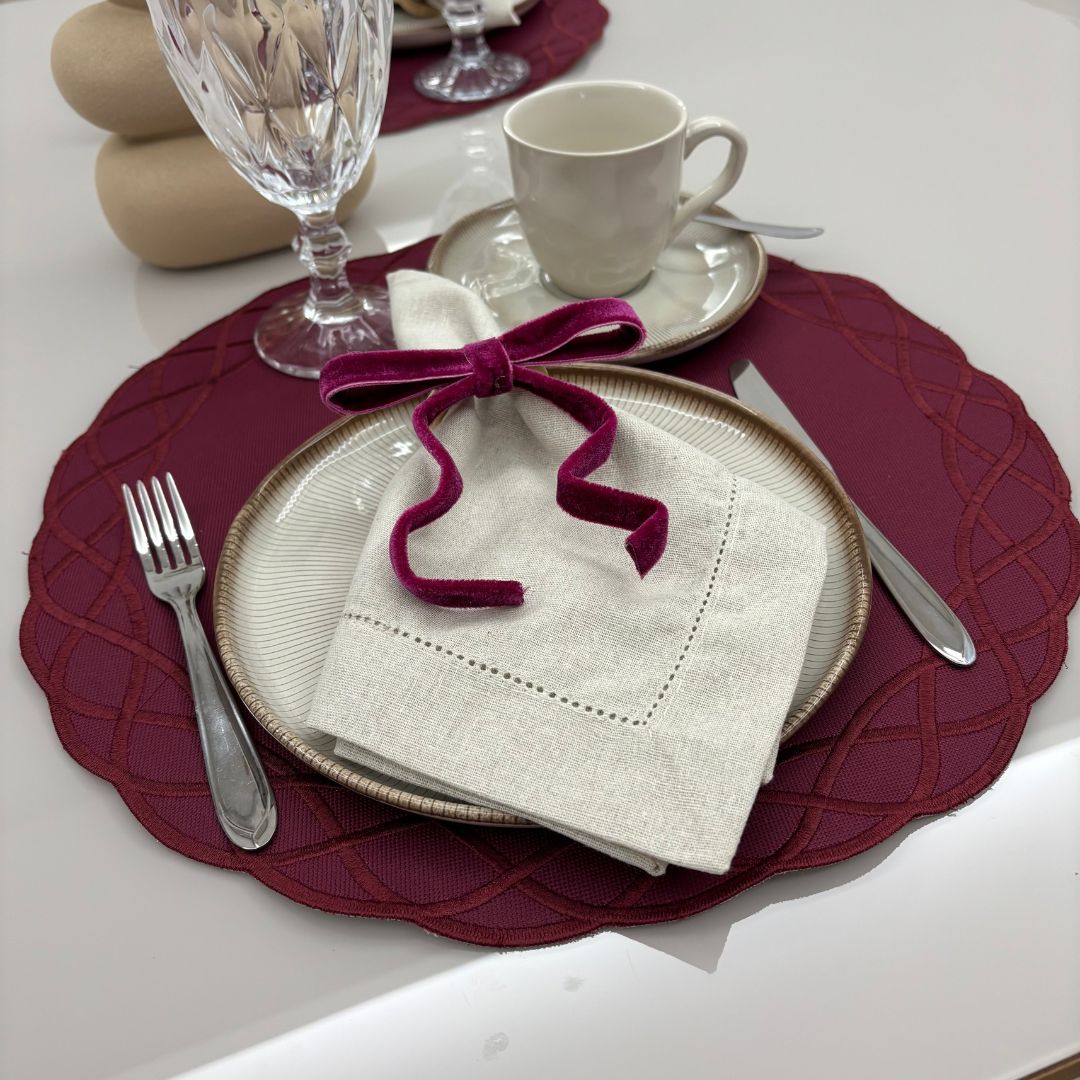 Lugar Americano Elos – 2 faces – bordo / bege com bordado bordo